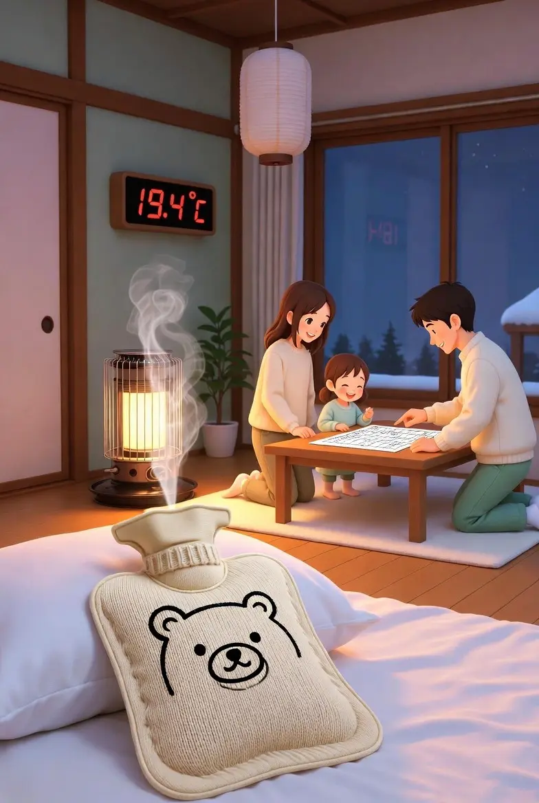 - 夜:湯たんぽを布団に入れ、電気毛布は“弱”で短時間運用